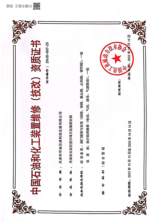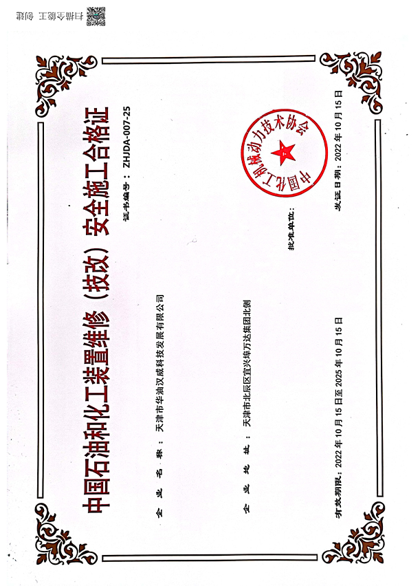 化工協(xié)會維修技改資質(zhì)證書