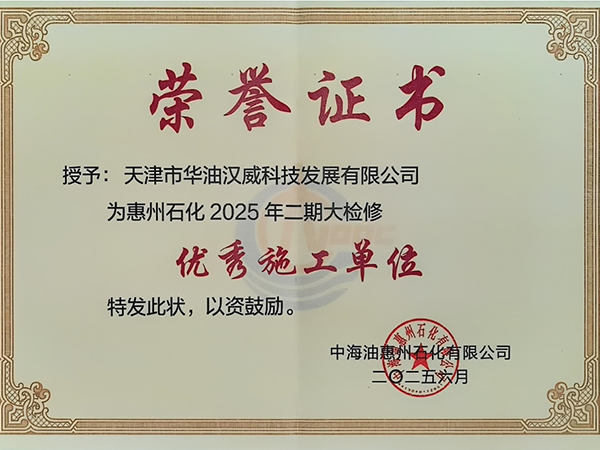 華油漢威榮獲中海油惠州石化2025年二期大檢修“優(yōu)秀施工單位”榮譽(yù)證書——專業(yè)鑄就品質(zhì),實力贏得認(rèn)可